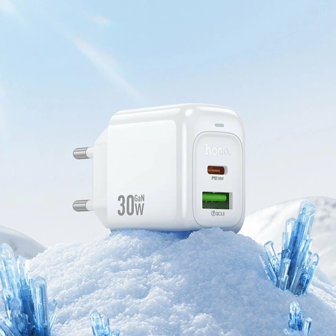 Сетевое зарядное устройство Hoco CS55A PD30W/QC3.0, GaN, с кабелем Type-C to Lightning, белый интересное: