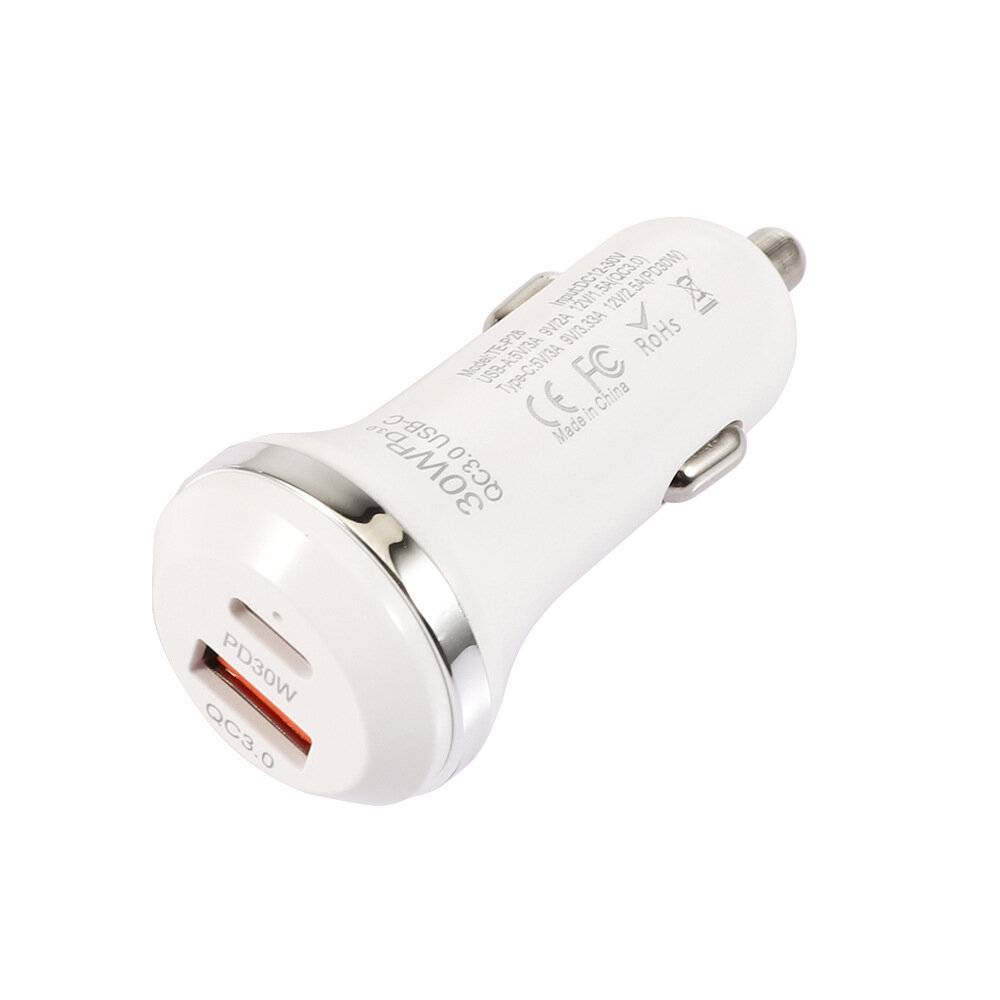 Купить Автомобильное зарядное устройство, 48Вт, USB+PD, быстрая зарядка, белый, голый металл