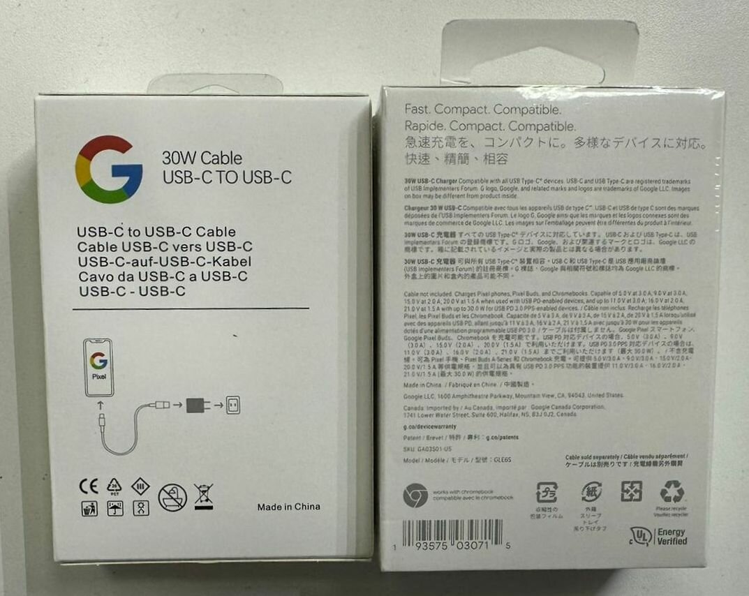 Cетевое зарядное устройство Google, 30W USB-C Charger+кабель интересное: