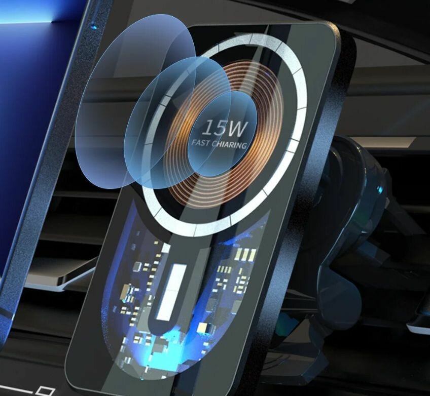 Беспроводное магнитное зарядное устройство 15W Max Car Charger интересное:
