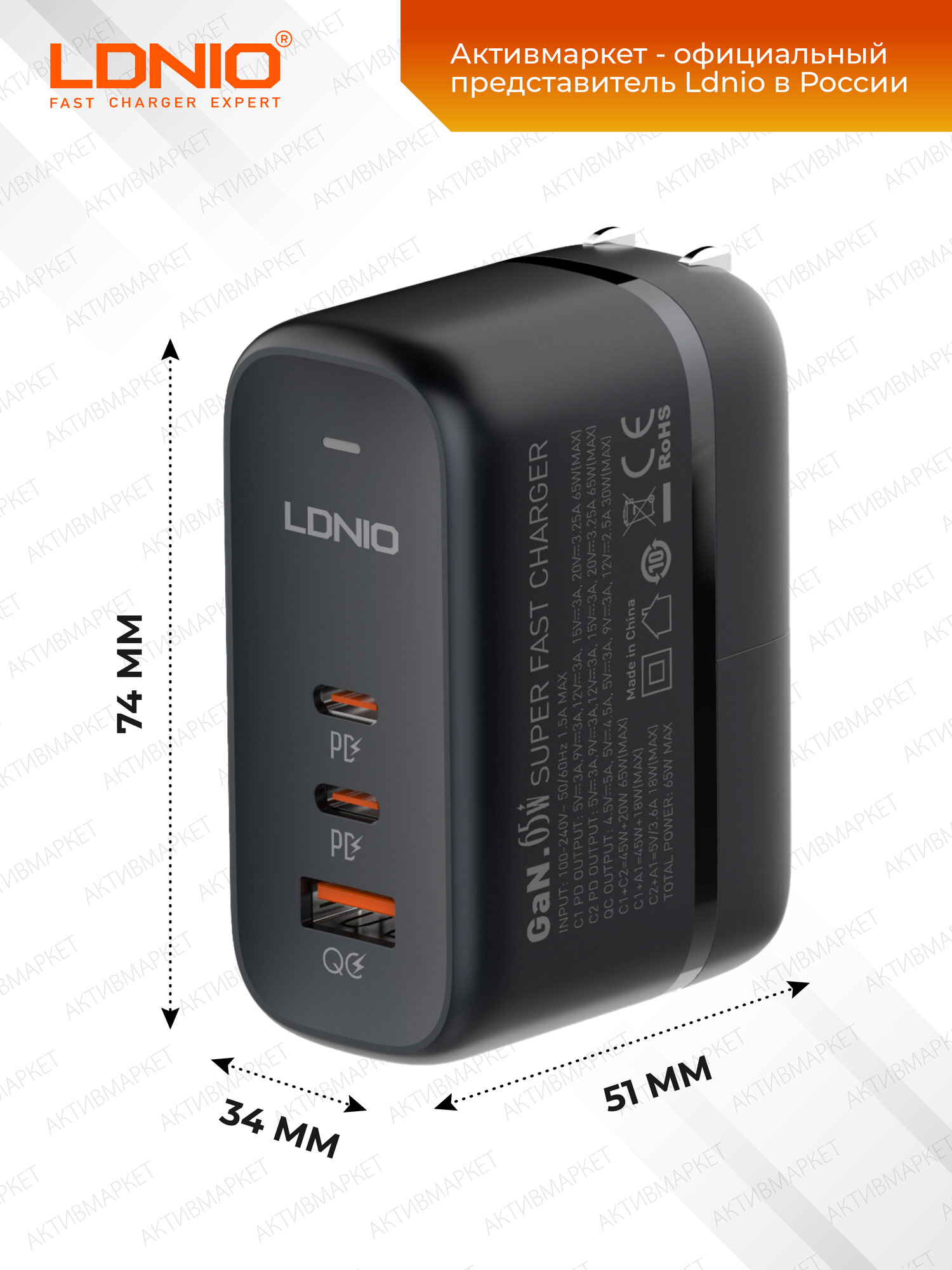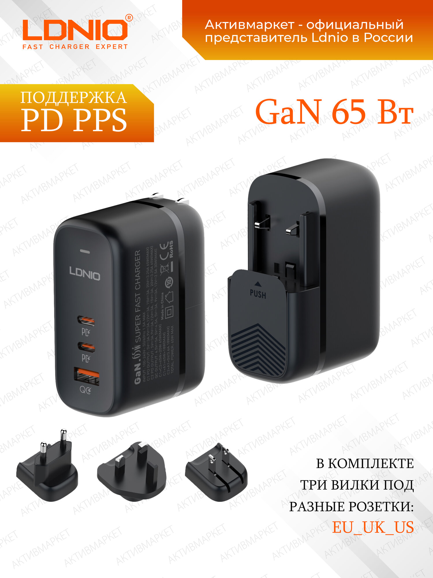 LDNIO Q366 быстрое зарядное устройство для телефона и ноутбука GaN 65W, 3 USB, кабель Type-C в комплекте интересное: