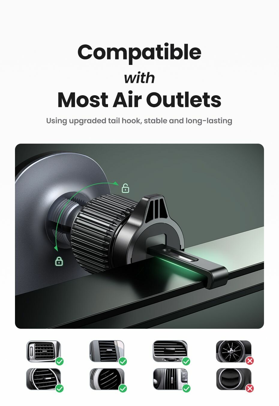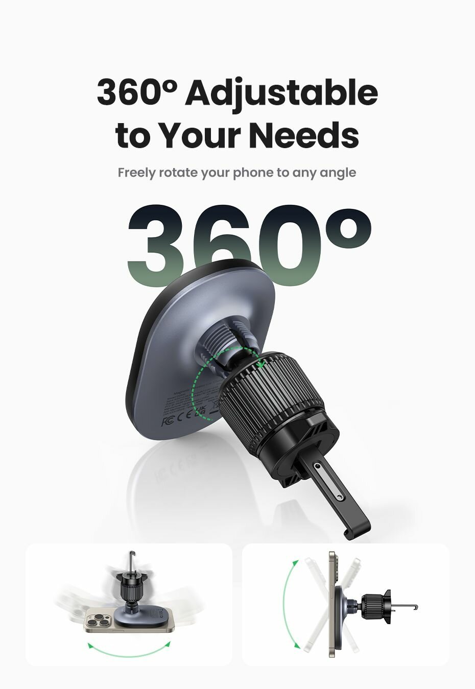 Купить Автомобильное беспроводное зарядное устройство UGREEN CD345 (25925) на вентиляционное отверстие. Цвет: черный