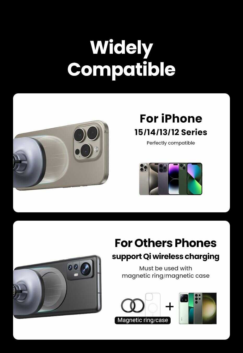Автомобильное беспроводное зарядное устройство UGREEN CD345 (25925) на вентиляционное отверстие. Цвет: черный интересное: