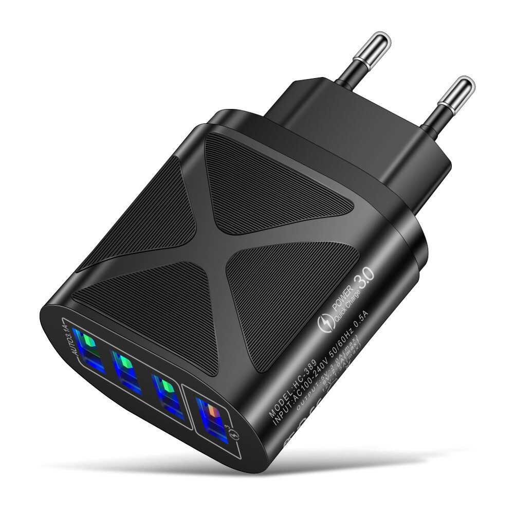 Зарядное устройство HCJTWIN 375-389, 4USB, QC3.0, выходная мощность 48Вт, черный