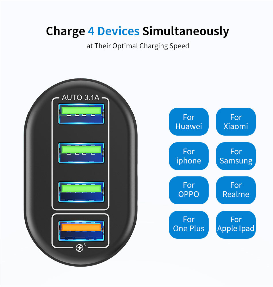 Зарядное устройство HCJTWIN 375-389, QC3.0, 5.1А, 4 порта, для мобильных устройств