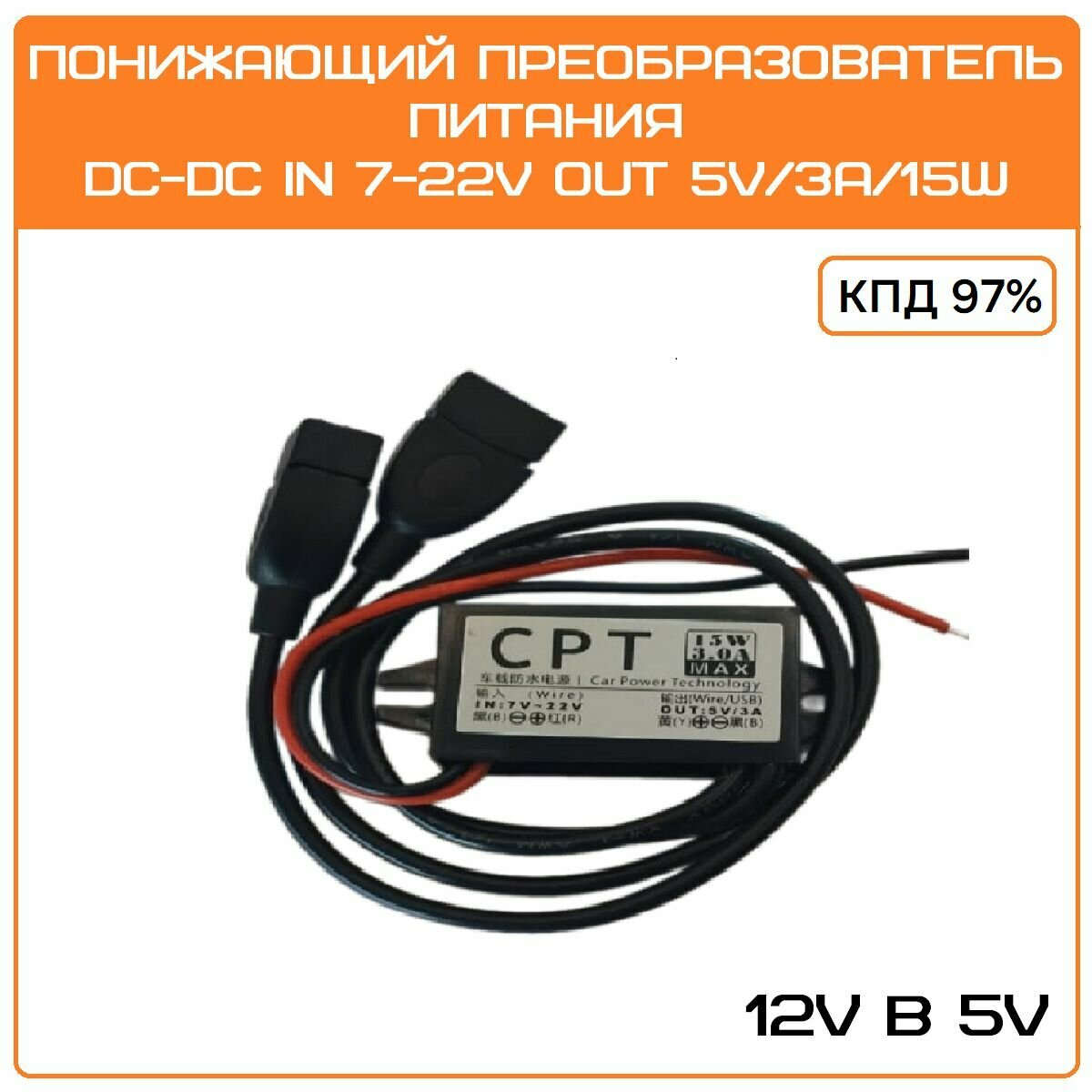 Конвертер, преобразователь напряжения DC-DC 12 - 5V 3A двойной USB тип 2 интересное: