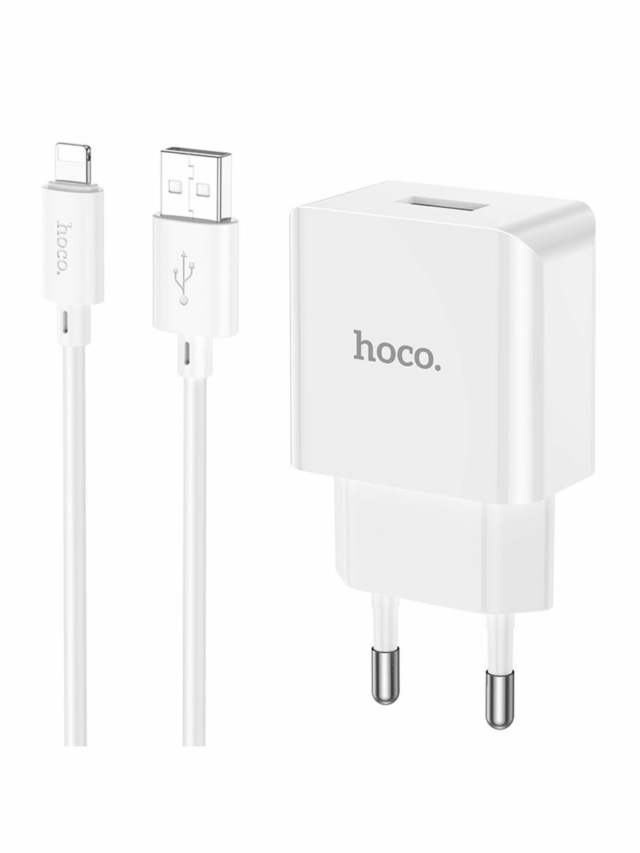 Купить Сетевое зарядное устройство Hoco C106A, 10.5W, белый + Apple Lightning 1м