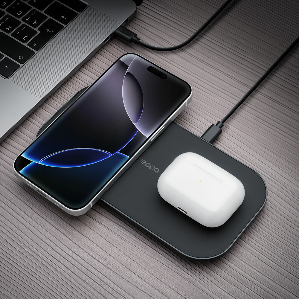 Беспроводная зарядка для телефона Charging Station Dual, 40Вт, черный, Deppa 24026-OZ, Без заводской упаковки интересное:
