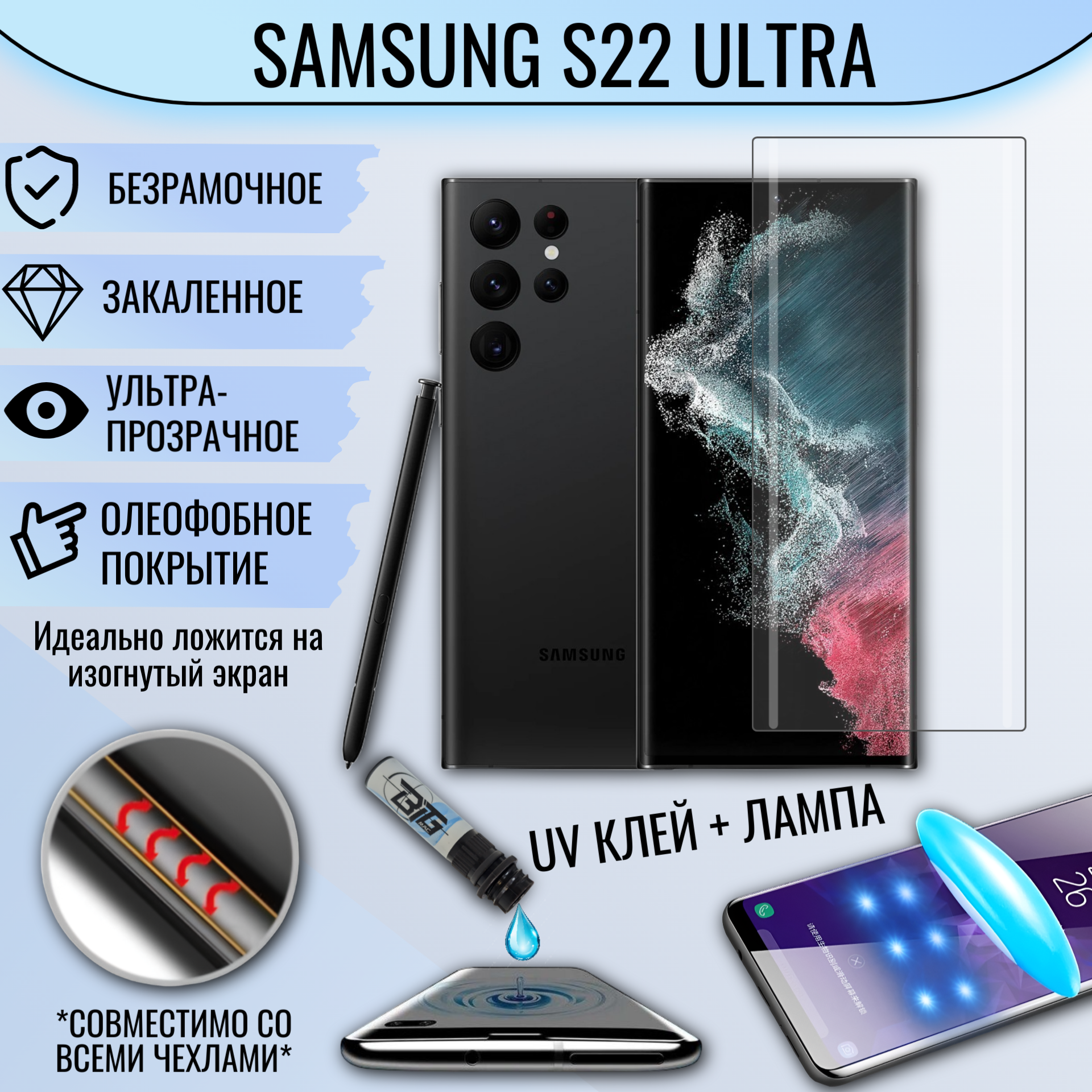 Защитное стекло Samsung S22 Ultra с уф клеем и лампой Полноэкранное стекло с22 ультра интересное: