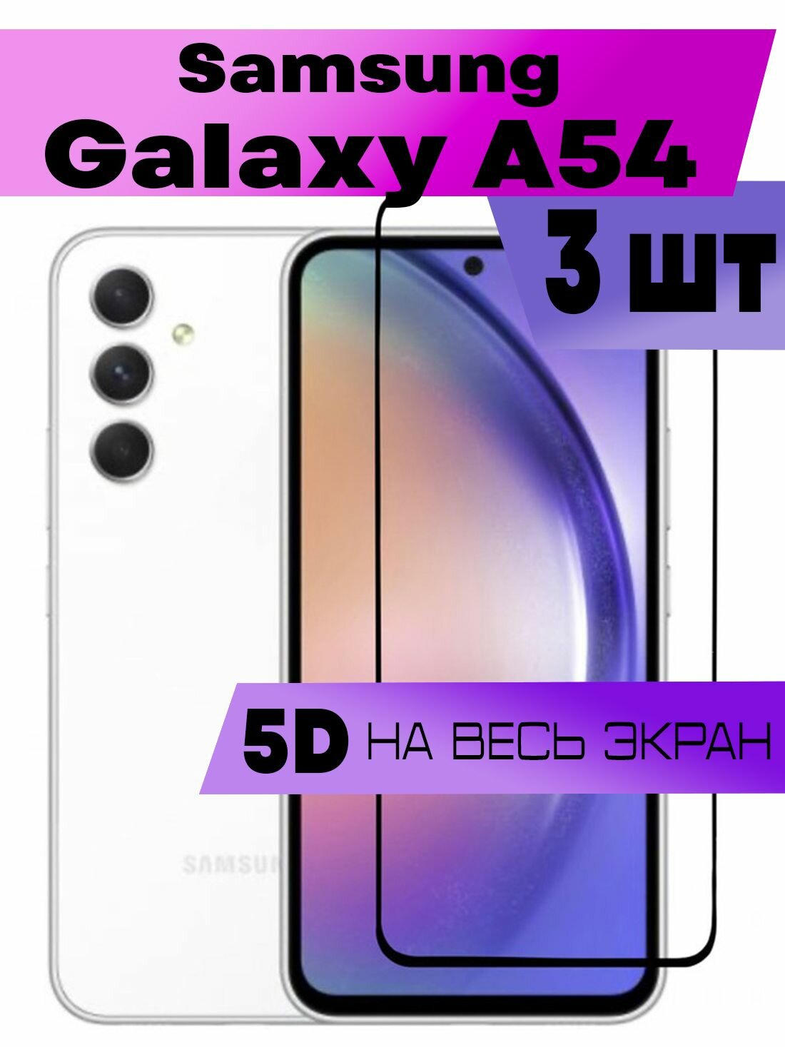 Защитное стекло для Samsung Galaxy A54, Самсунг Галакси А54 (BUYOO 9D на весь экран, прозрачное с черной рамкой) интересное:
