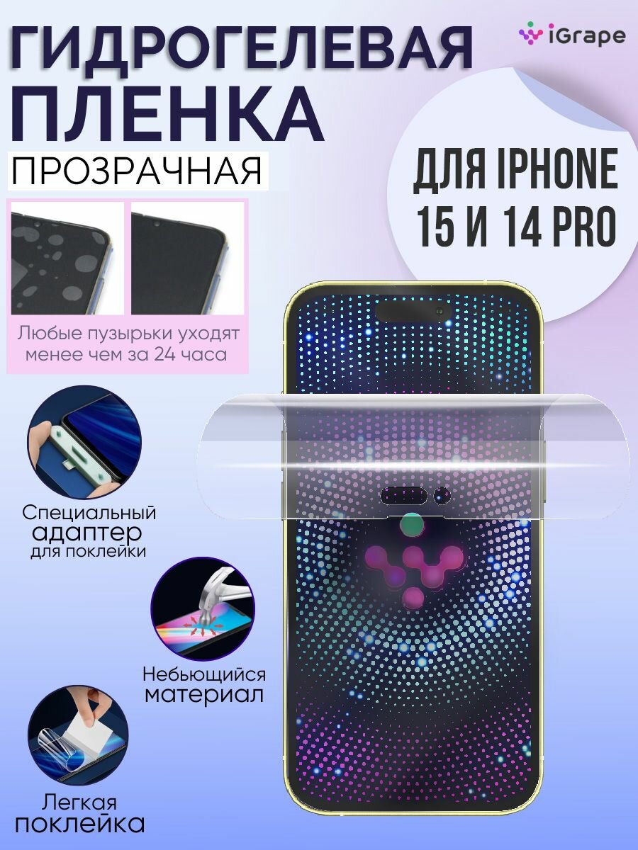 Купить Гидрогелевая пленка iPhone 15, iPhone 14 Pro, iGrape (Прозрачная) (2 шт.) / пленка на айфон 15 / пленка на айфон 14 про