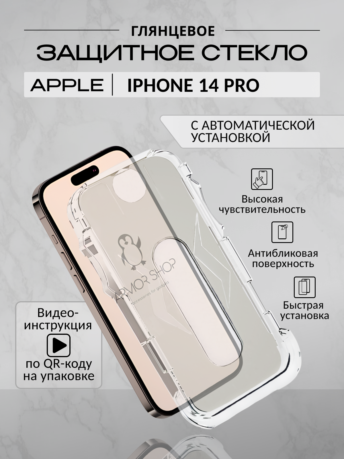 Защитное стекло с "автоматической" установкой для iPhone 14 Pro, глянцевое интересное: