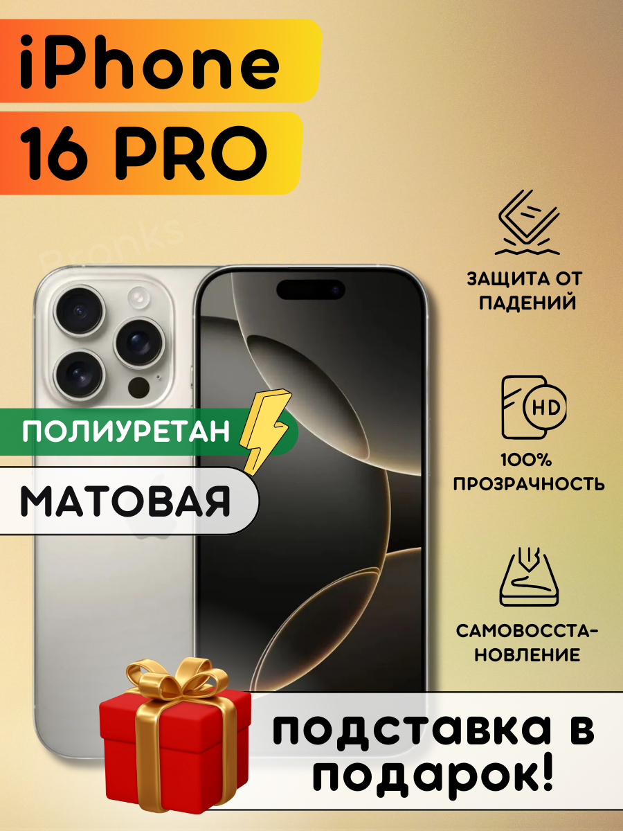 СохранитьМатовая гидрогелевая полиуретановая пленка на iPhone 16 Pro, плёнка защитная на айфон 16 Про интересное: