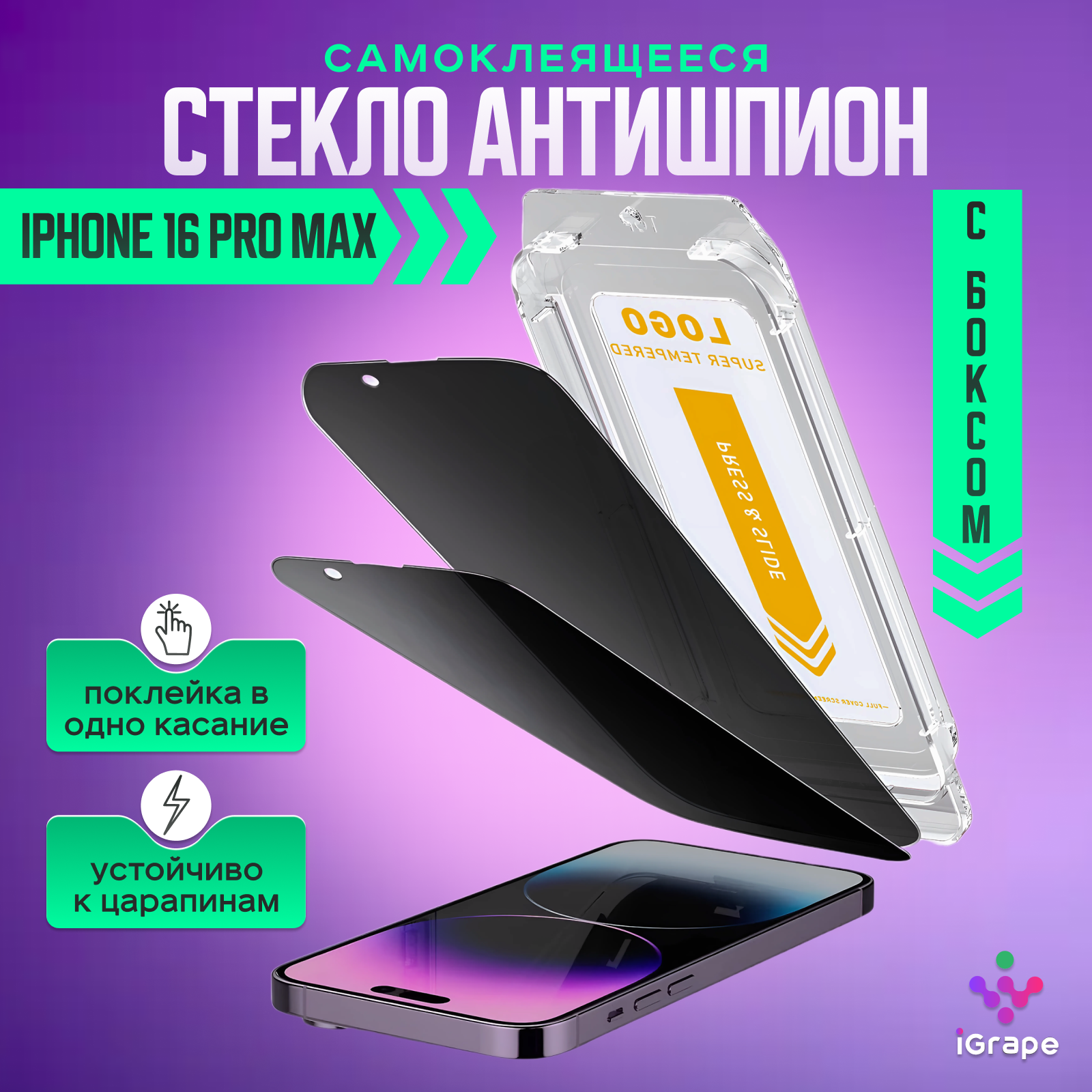Защитное стекло самоклеящееся с боксом iPhone 16 Pro Max, iGrape (Антишпион) / стекло на айфон 16 про макс интересное: