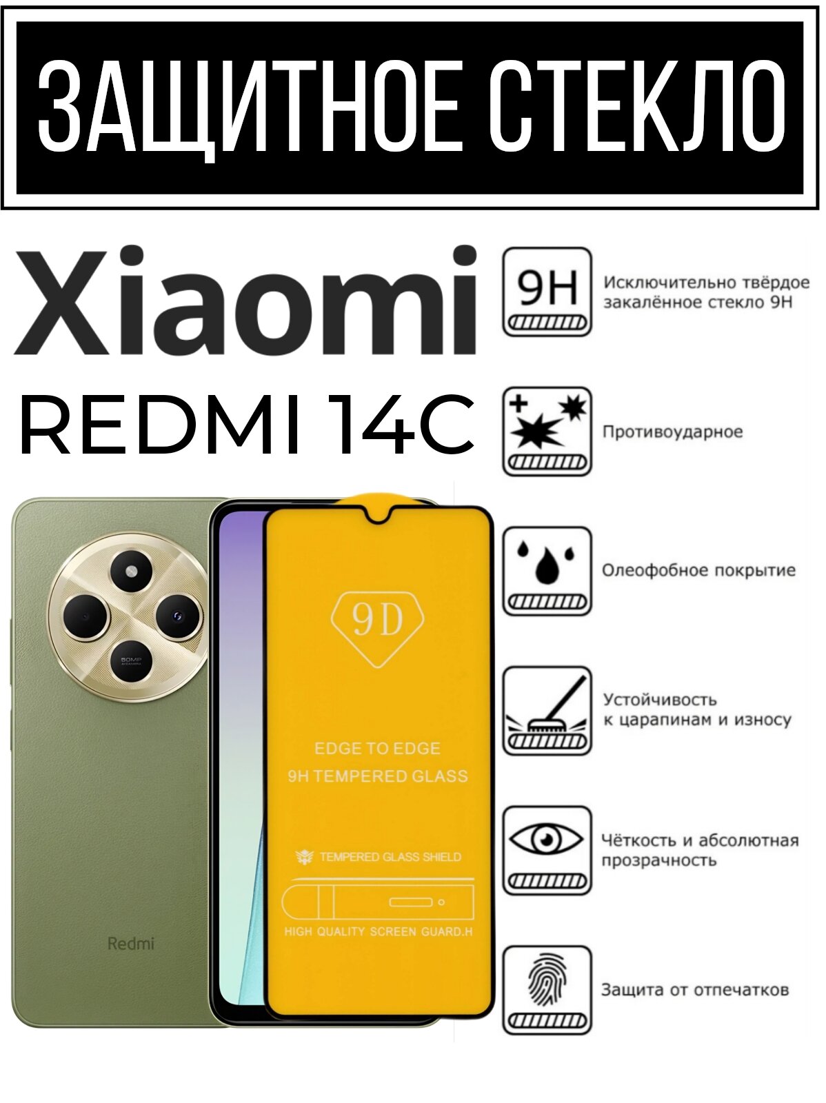 Противоударное закаленное защитное стекло к смартфонам Xiaomi Redmi 14C ( Ксиаоми Редми 14C ) интересное: