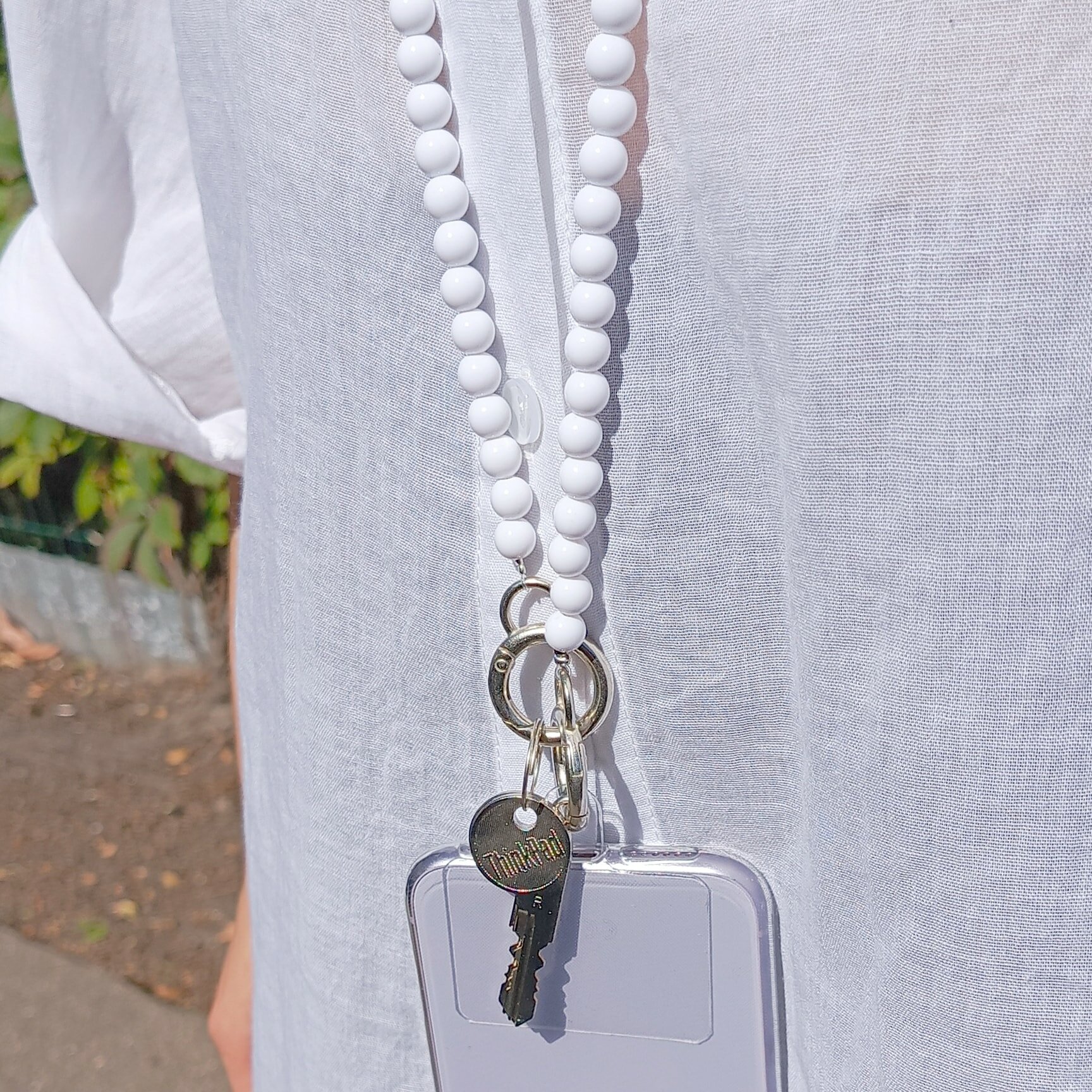 Купить Шнурок для телефона и ключей, 110 см, бусы, белый