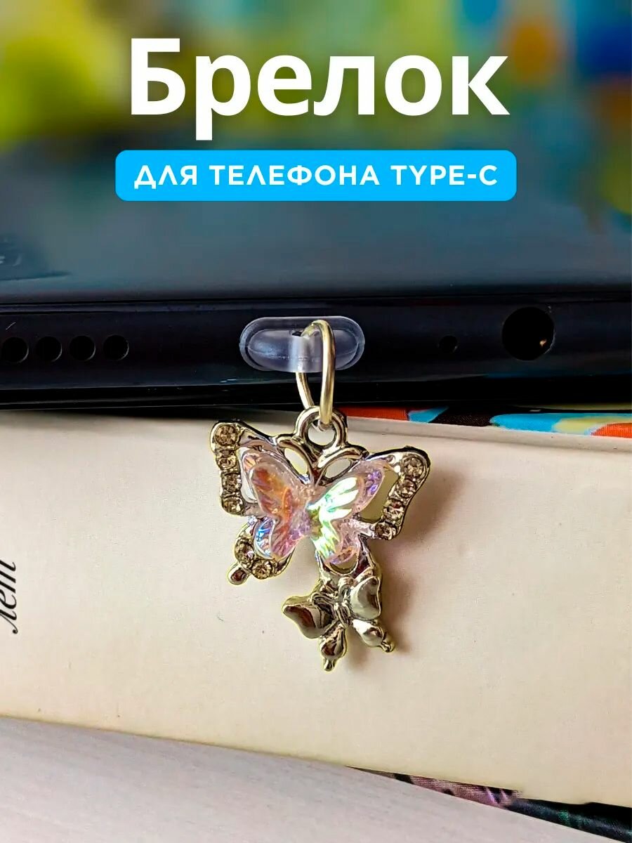Брелок на телефон Бабочка подвеска / висюлька заглушка (Type-C) интересное: