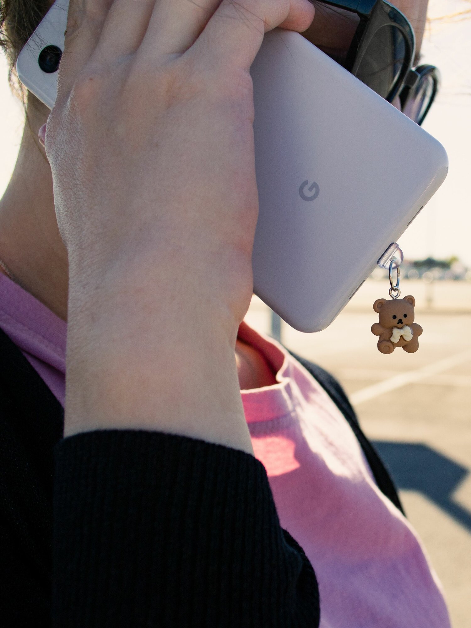 Купить Брелок на телефон подвеска "Бежевый Мишка" / висюлька заглушка (Type-C)