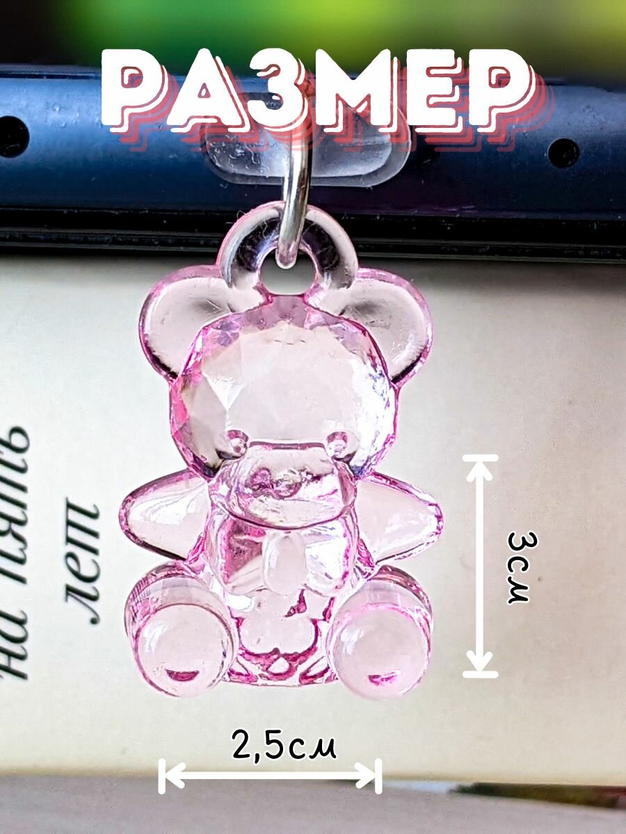 Брелок на телефон подвеска "Бежевый Мишка" / висюлька заглушка (Type-C)