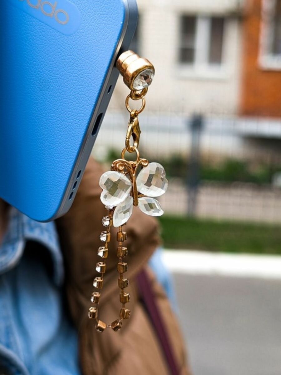 Брелок на телефон Бабочка подвеска / висюлька заглушка 3,5 мм интересное: