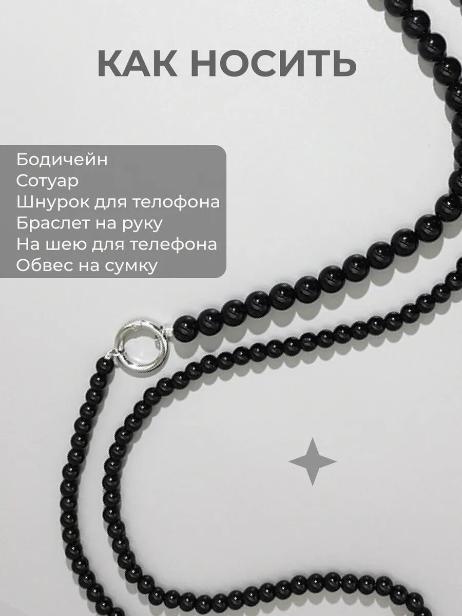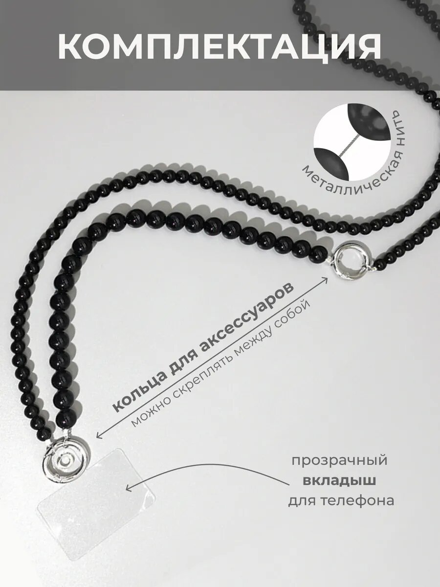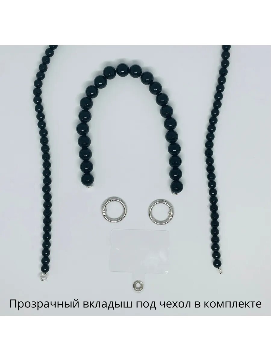 Шнурок подвеска для телефона с черными бусинами и вкладышем для чехла