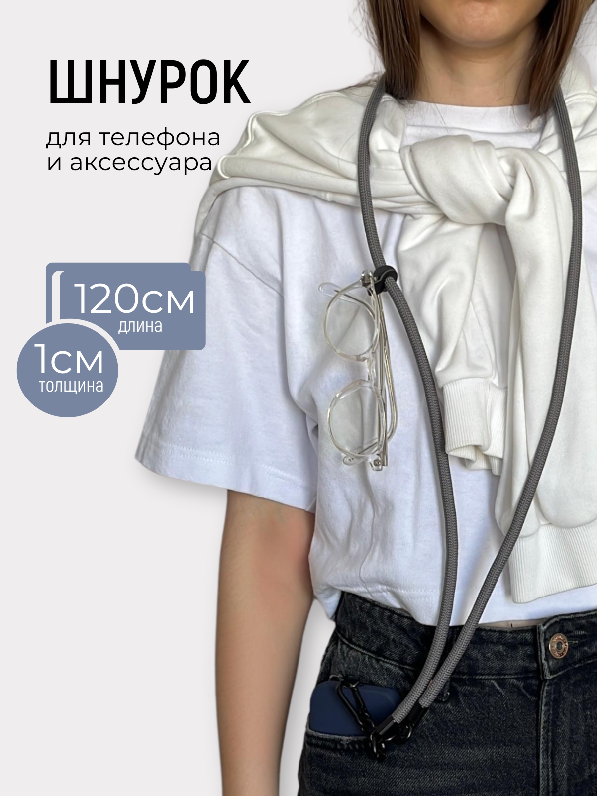 Купить Веревка шнурок для телефона универсальный серый 120 см тонкий с вкладышем