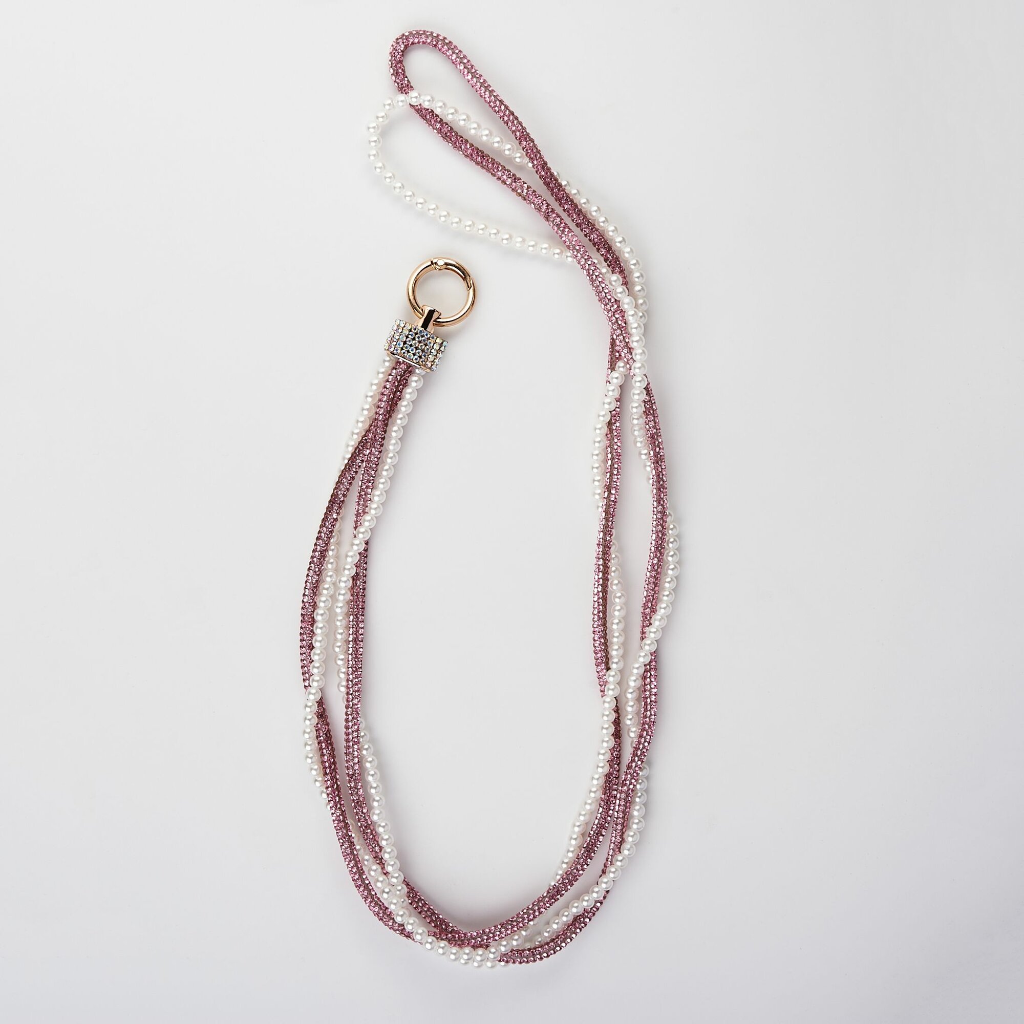 Купить Цепочка для смартфона, бусины и жемчуг / Брелок -шнурок для смартфона, стразы и жемчуг / Розовый