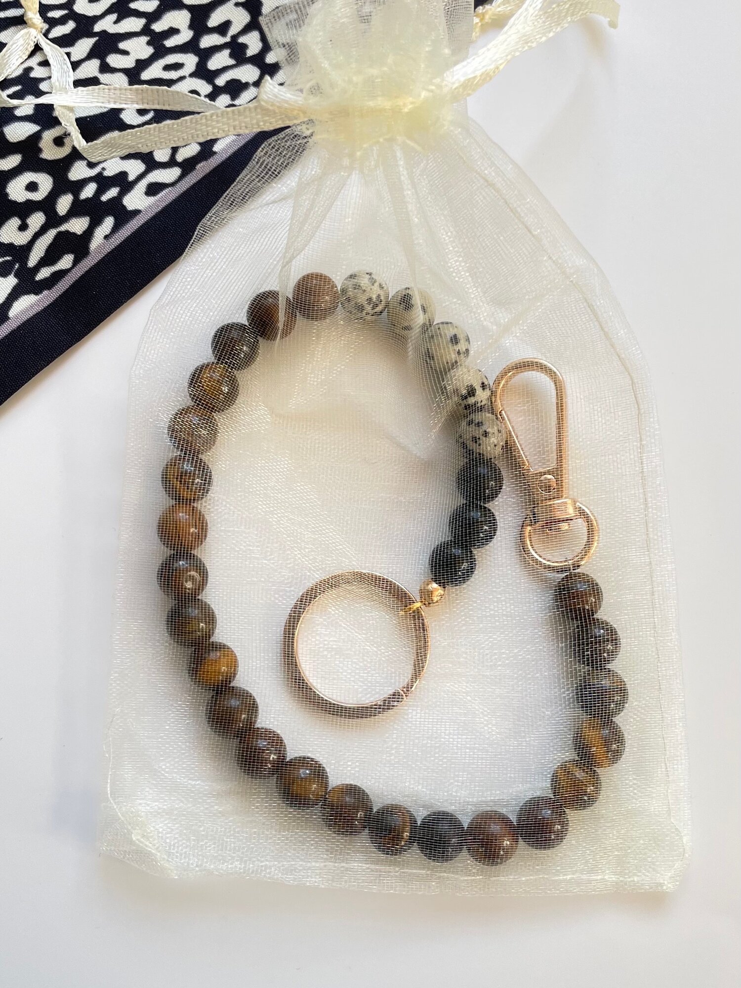 Купить Подвеска на телефон из натурального камня "Nevesna" 32 см тигровый глаз, яшма