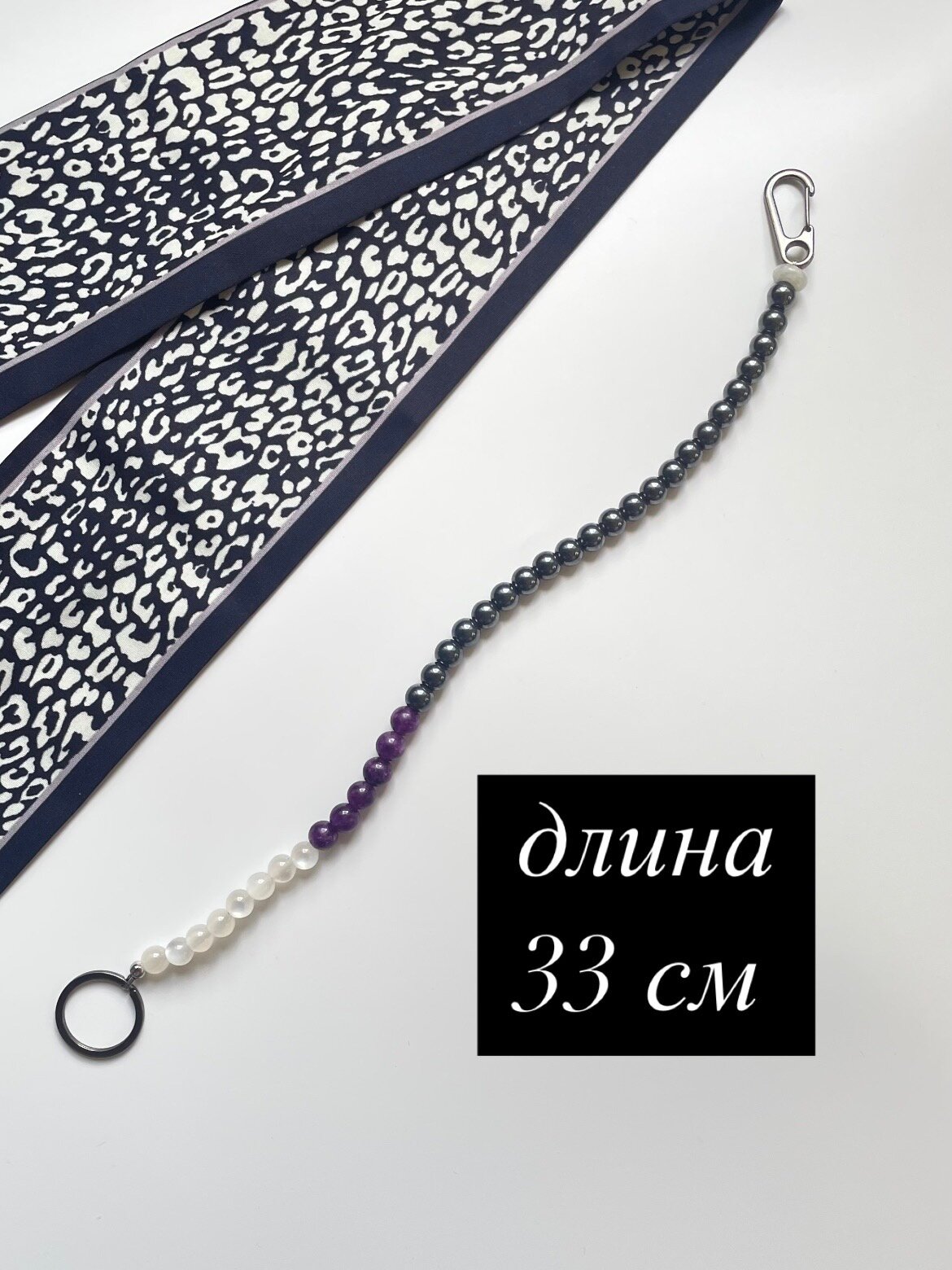 Купить Подвеска на телефон из натурального камня "Nevesna" 33 см гематит и смола кварц