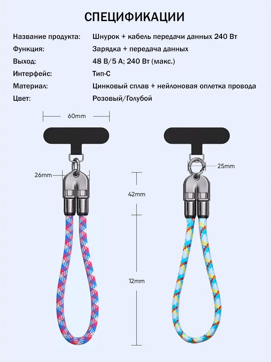 Шнурок-зарядка для телефона, красно-голубой, 30 см интересное: