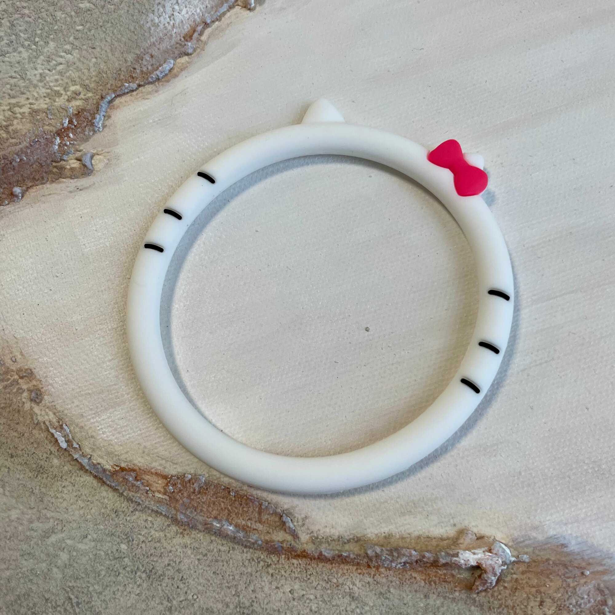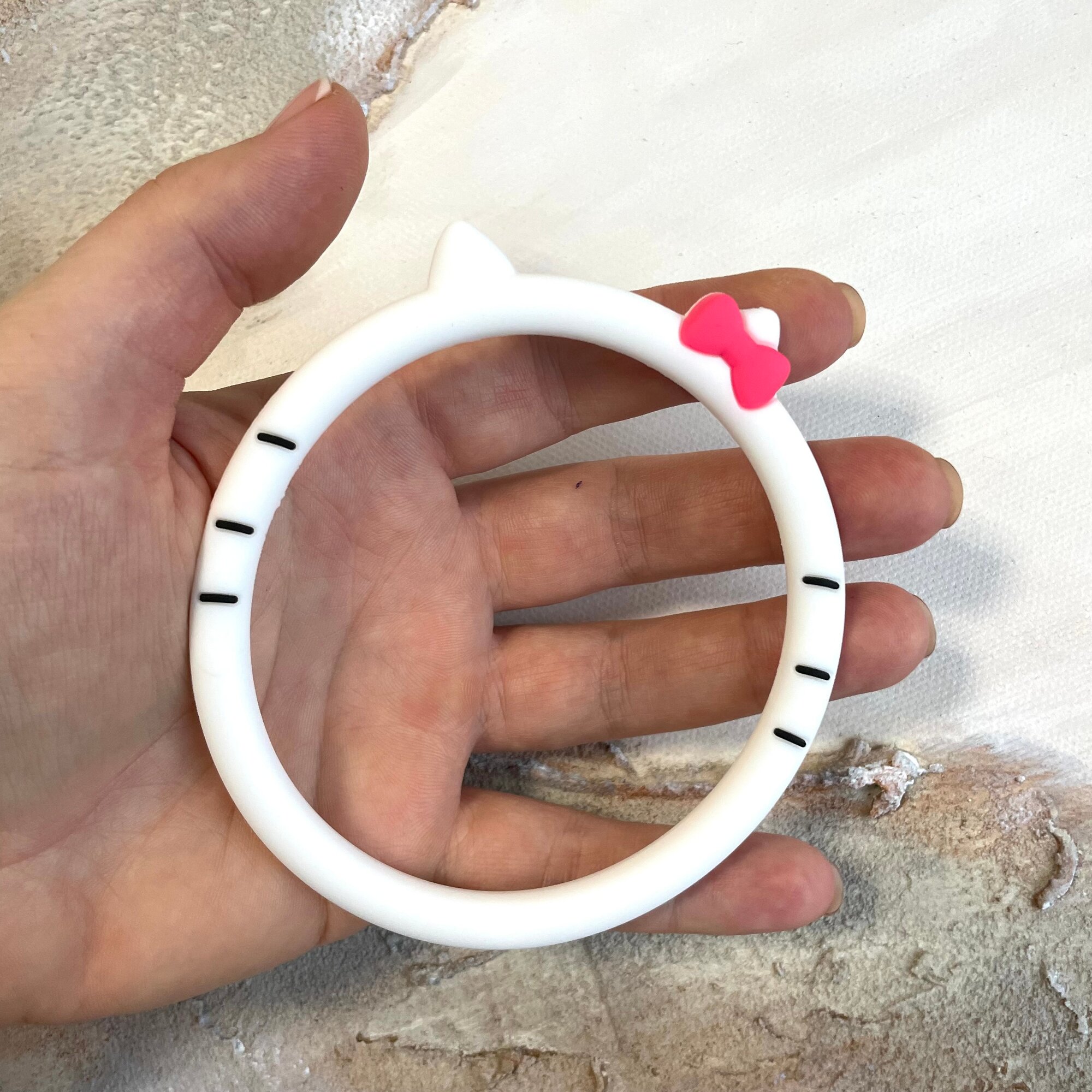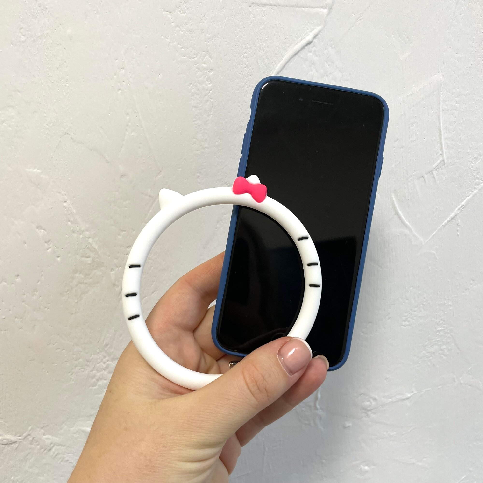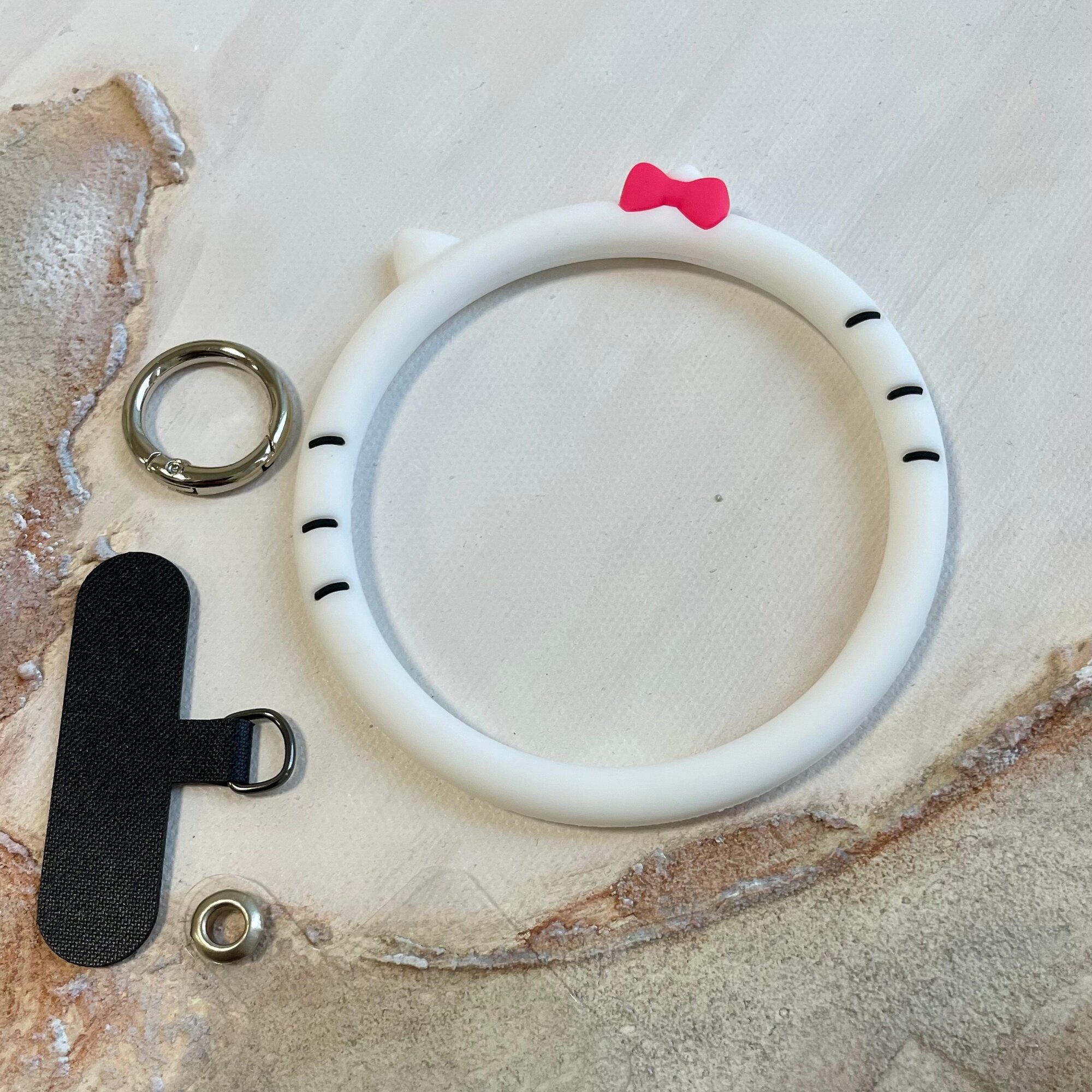 Купить Шнурок-браслет мягкий для телефона "Кольцо Котик белый", белый, силикон, с креплением