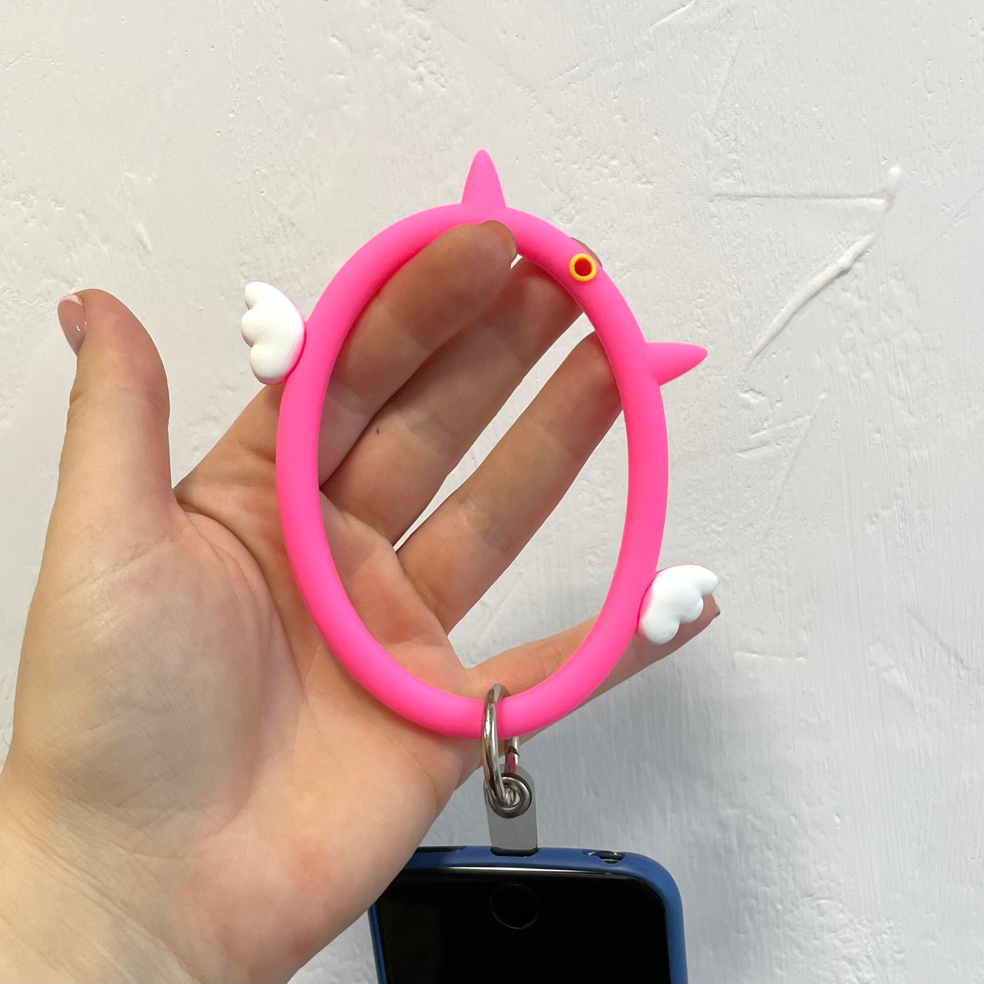 Купить Шнурок-браслет мягкий для телефона "Кольцо Ангел", розовый, силикон, с креплением