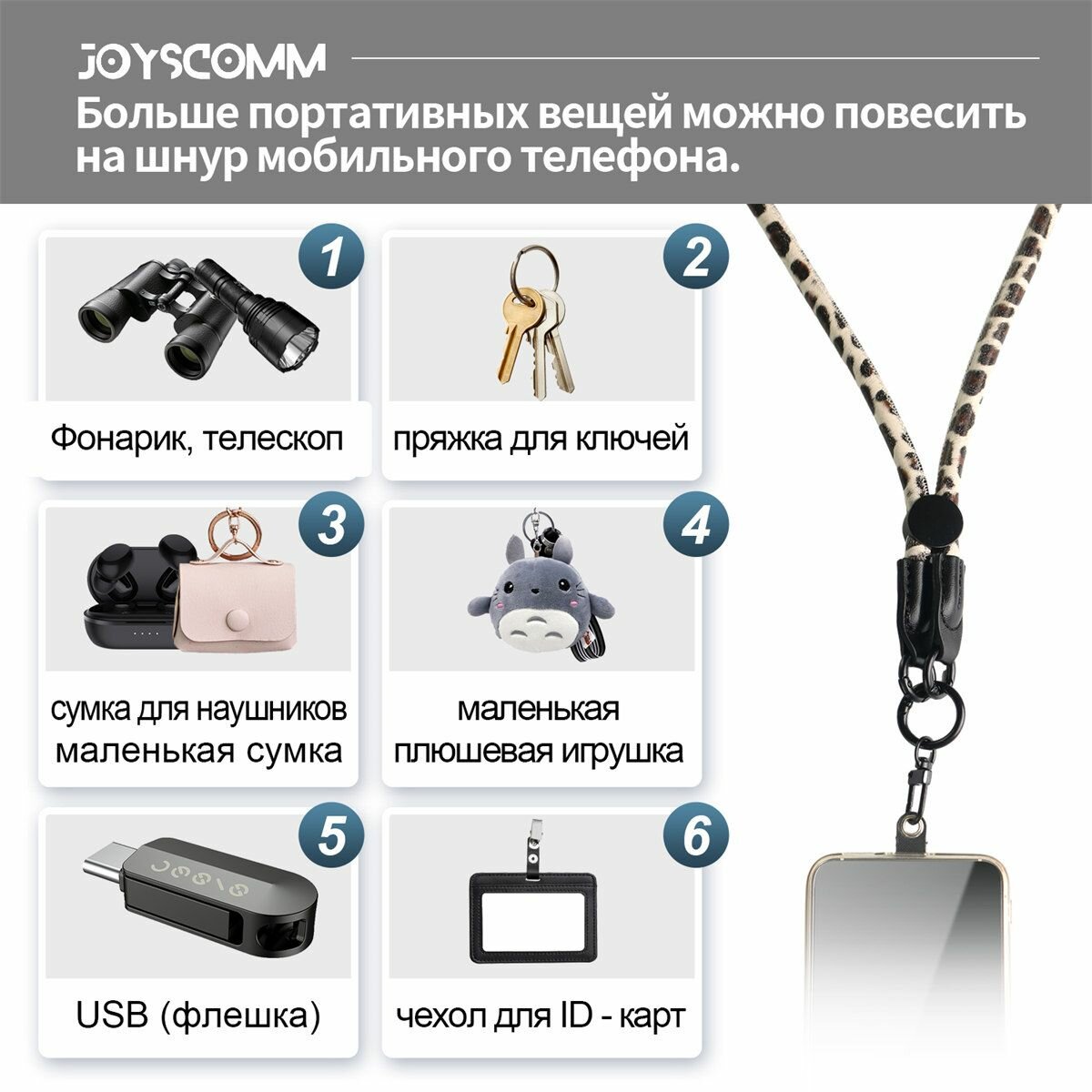 Шнурок для телефона на шею JOYSCOMM Jeopard Series White интересное: