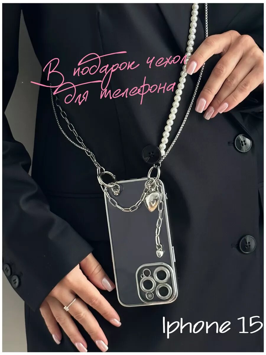 Цепочка на тело шнурок на телефон с жемчугом Iphone 15 интересное: