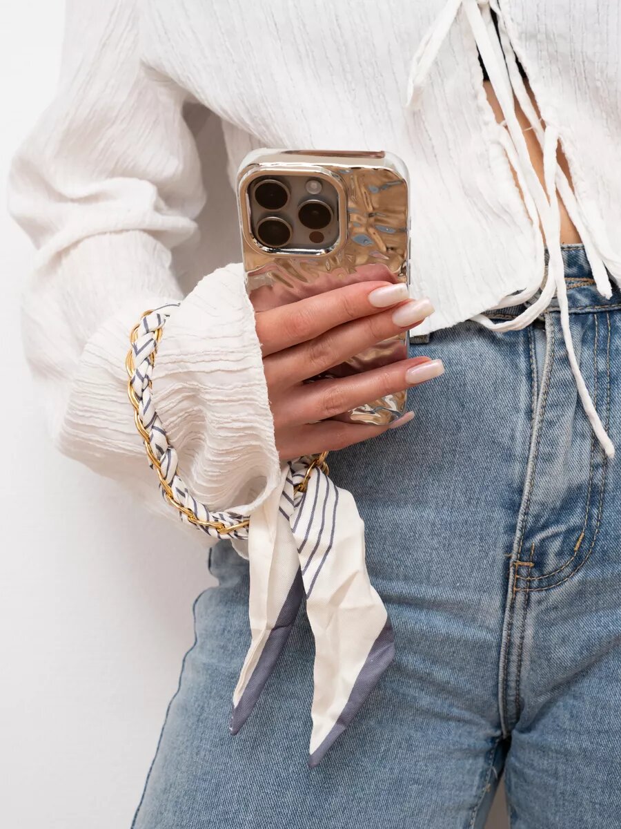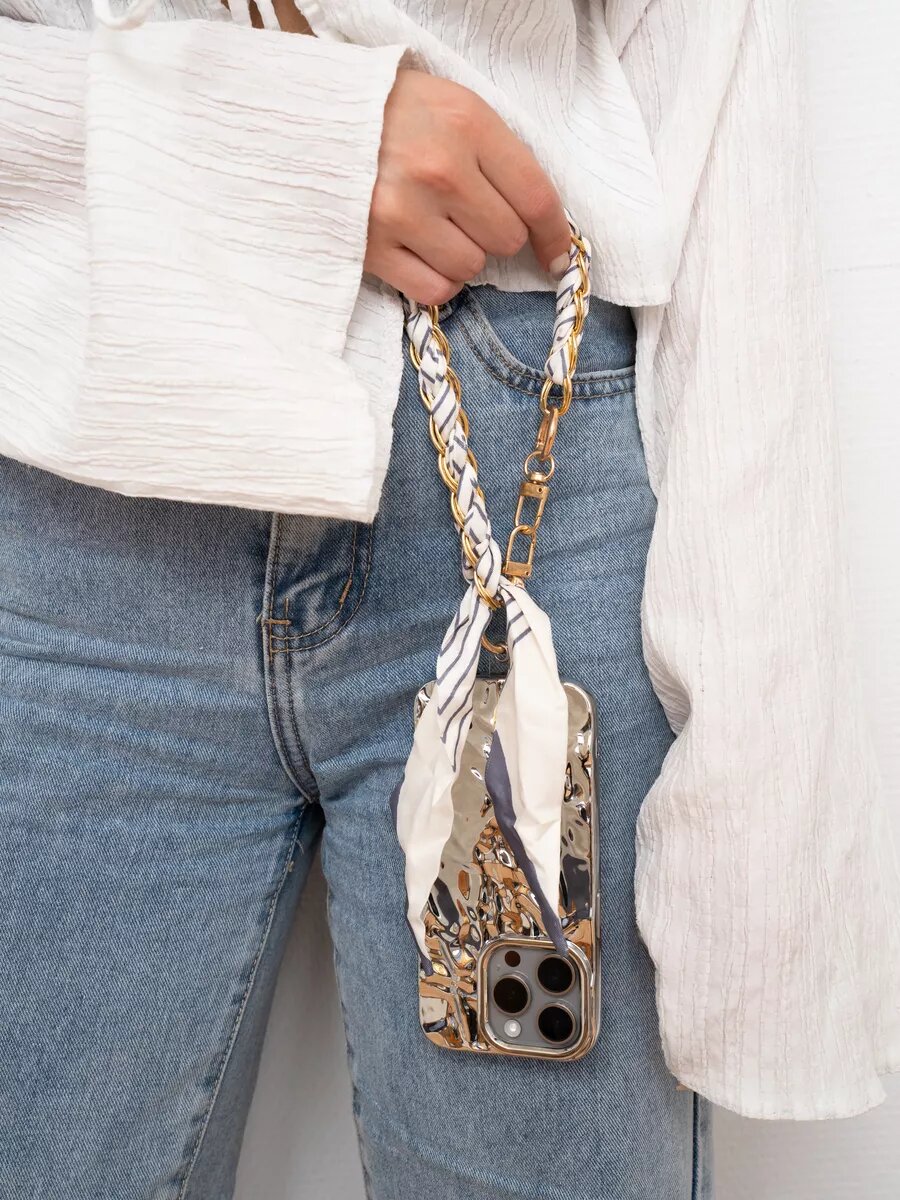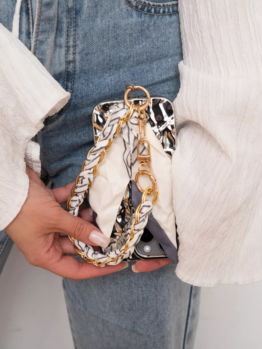 Купить Шнурок-брелок О'кейси, для телефона, на шею, белый/серый/золотистый