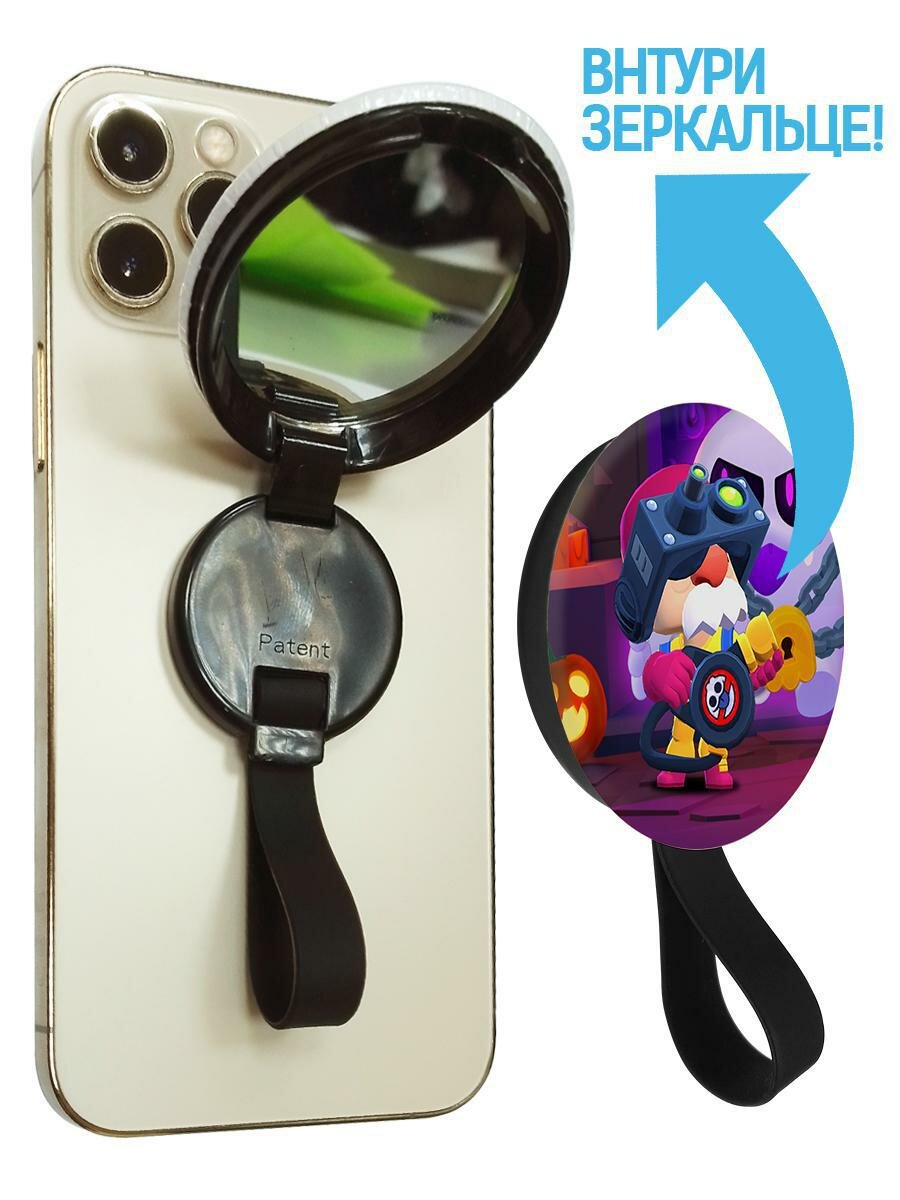 Кольцо-держатель с зеркалом Krutoff для телефона Brawl Stars - Охотник за Скуиками Гэйл интересное: