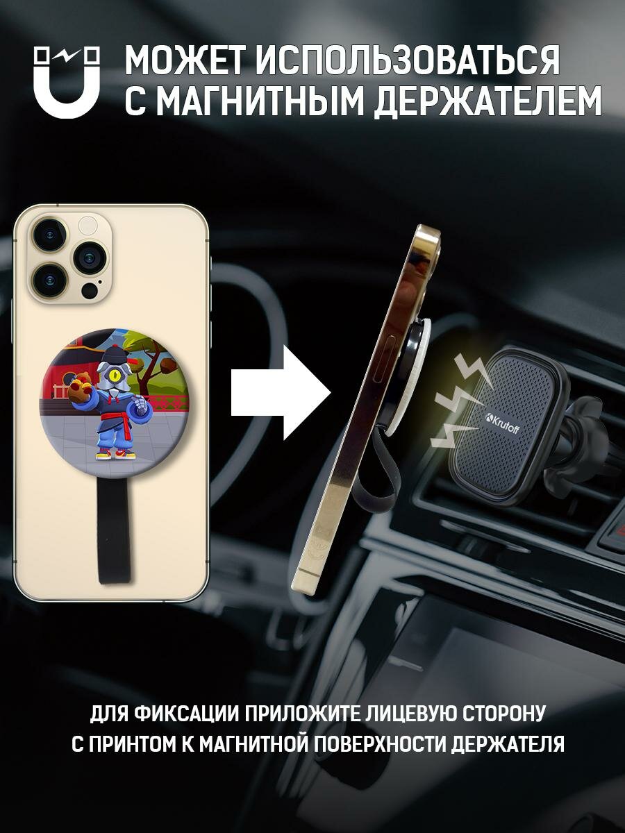 Кольцо-держатель с зеркалом Krutoff для телефона Brawl Stars - Великий Мастер Барли интересное: