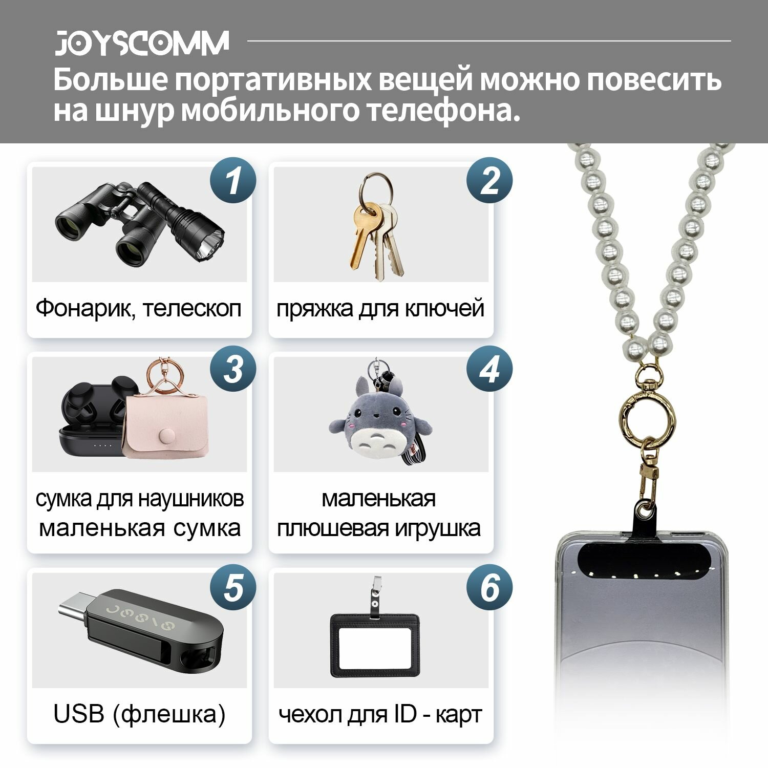 Шнурок для телефона на шею JOYSCOMM Pearl Series Blue интересное: