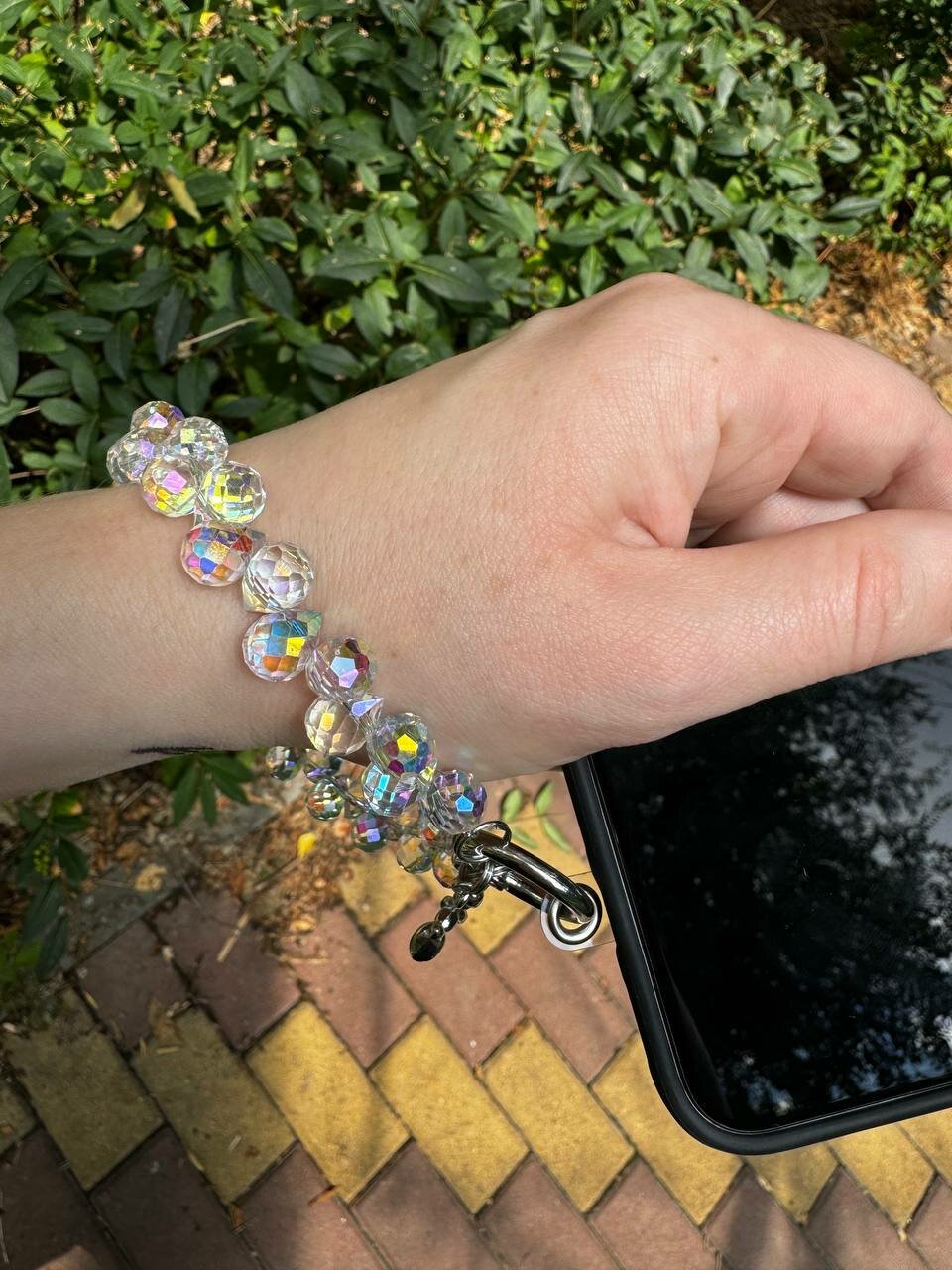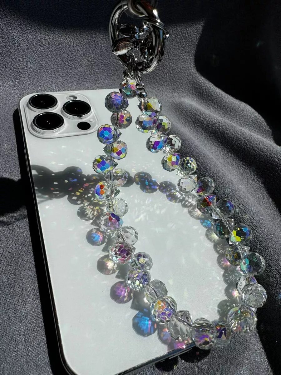 Шнурок на руку для телефона из бусин интересное: