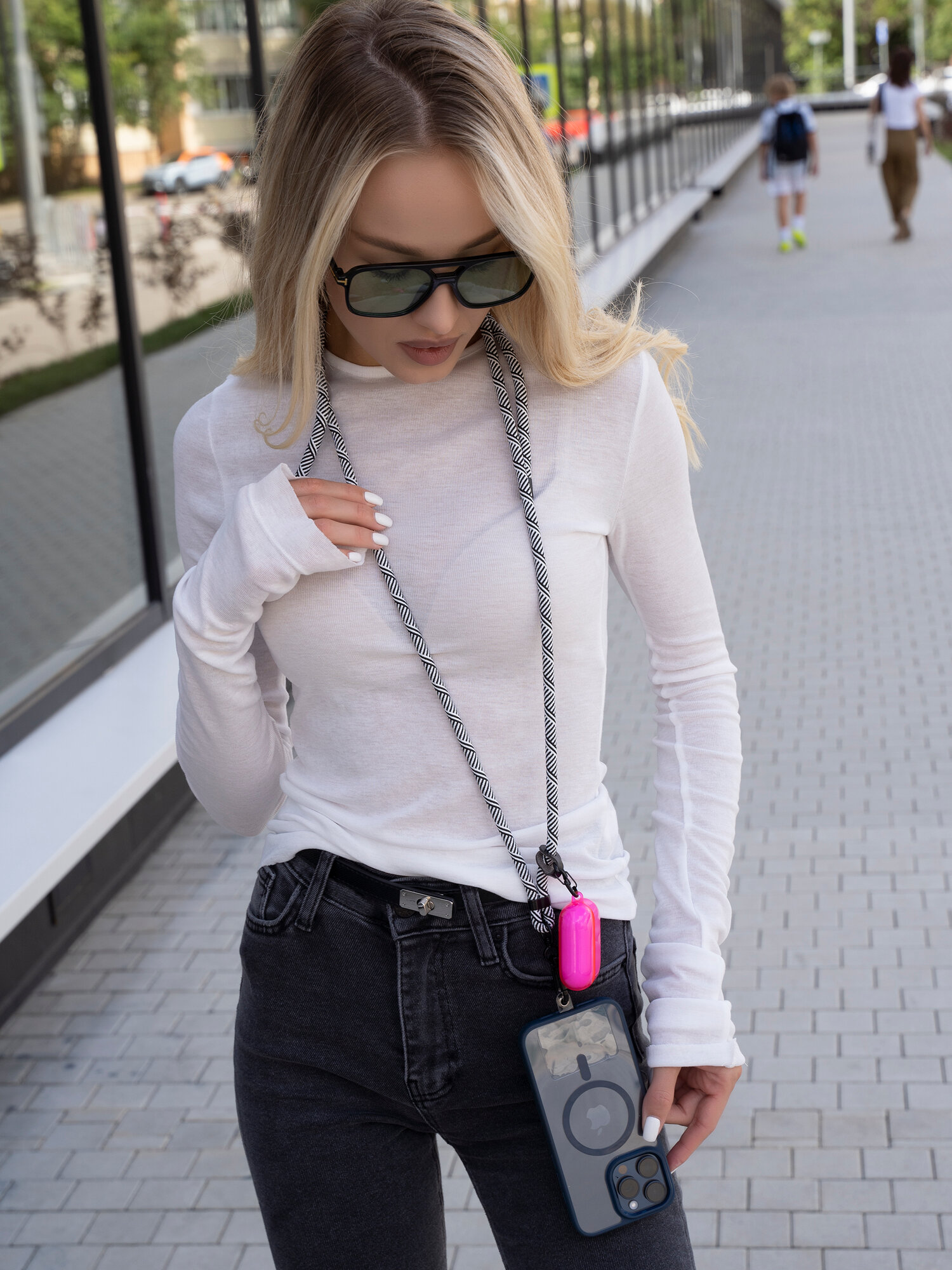 Купить Шнурок О'Кейси, для телефона, на шею, с карабином, белый/чёрный, 1 шт