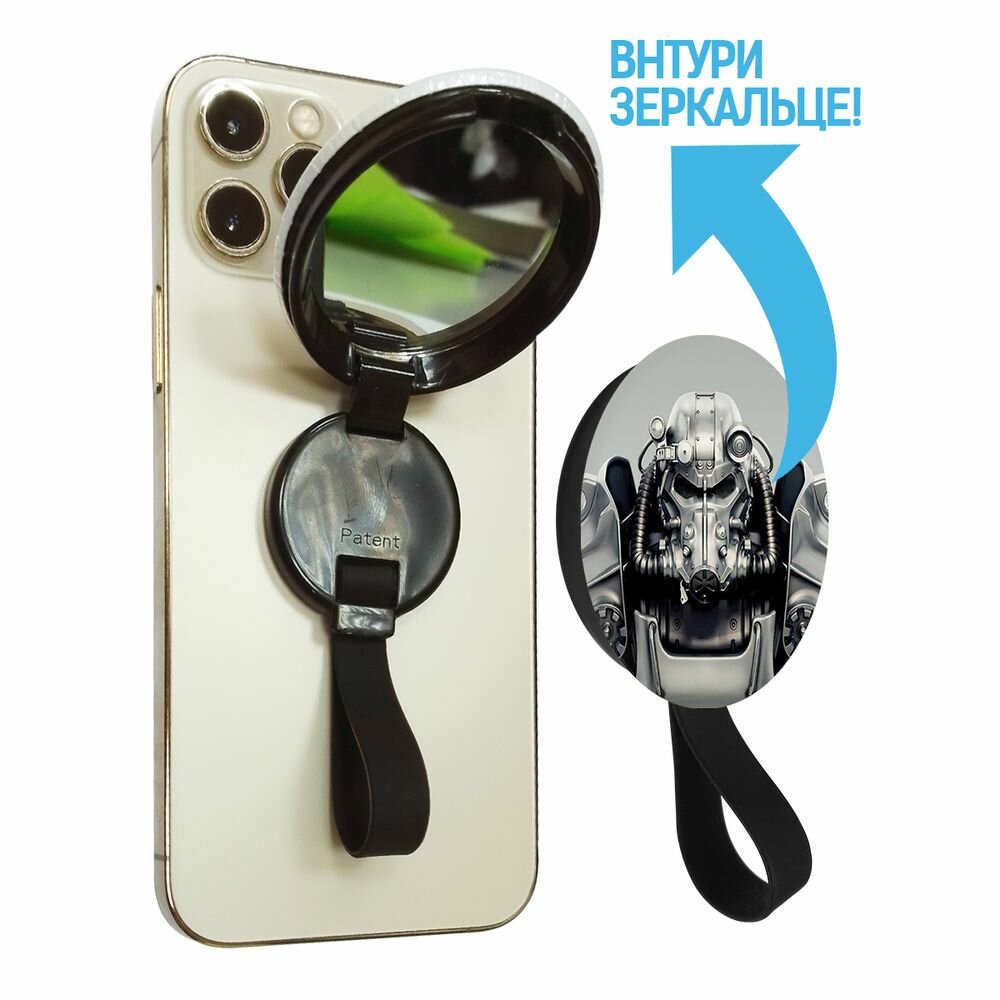 Кольцо-держатель с зеркалом Krutoff для телефона Фоллаут (Fallout) - Братство стали интересное: