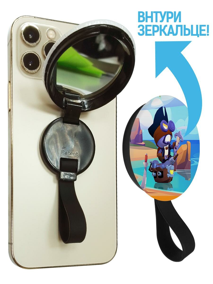 Купить Кольцо-держатель с зеркалом Krutoff для телефона Brawl Stars - Темный Корсар Карл