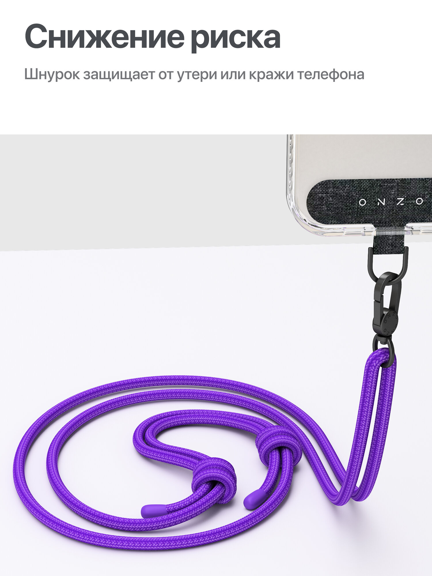 Шнурок для телефона на шею дакроновый с креплением в комплекте, 2020x6 мм, фиолетовый интересное: