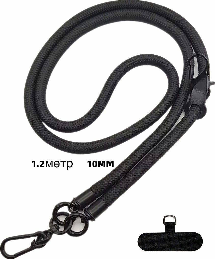 Шнурок толстый для телефона через плечо с креплением для чехла, для ключей, бейджа, фотоаппарата. Черный