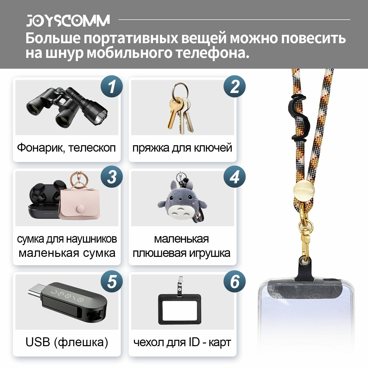 Шнурок для телефона на шею JOYSCOMM Jeometry Series Orange интересное: