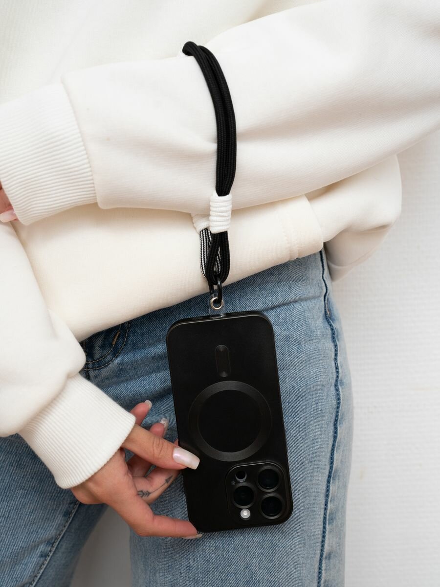 Купить Шнурок-брелок для телефона О'кейси, текстиль, цвет чёрный/белый