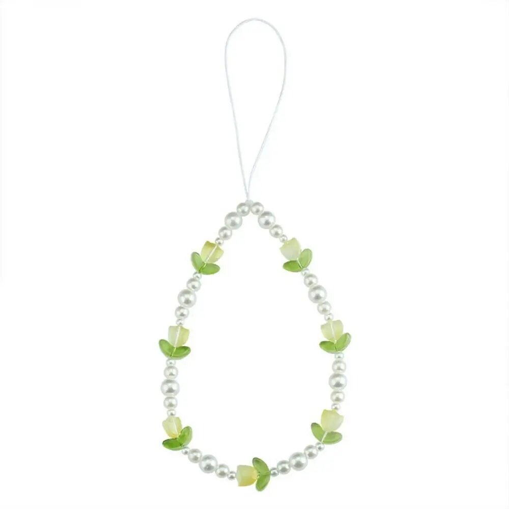 Милый тюльпан с цветами, бусинами, ремешки для телефона, женский брелок, брелок для автомобильных ключей, чехол для гарнитуры, yellow