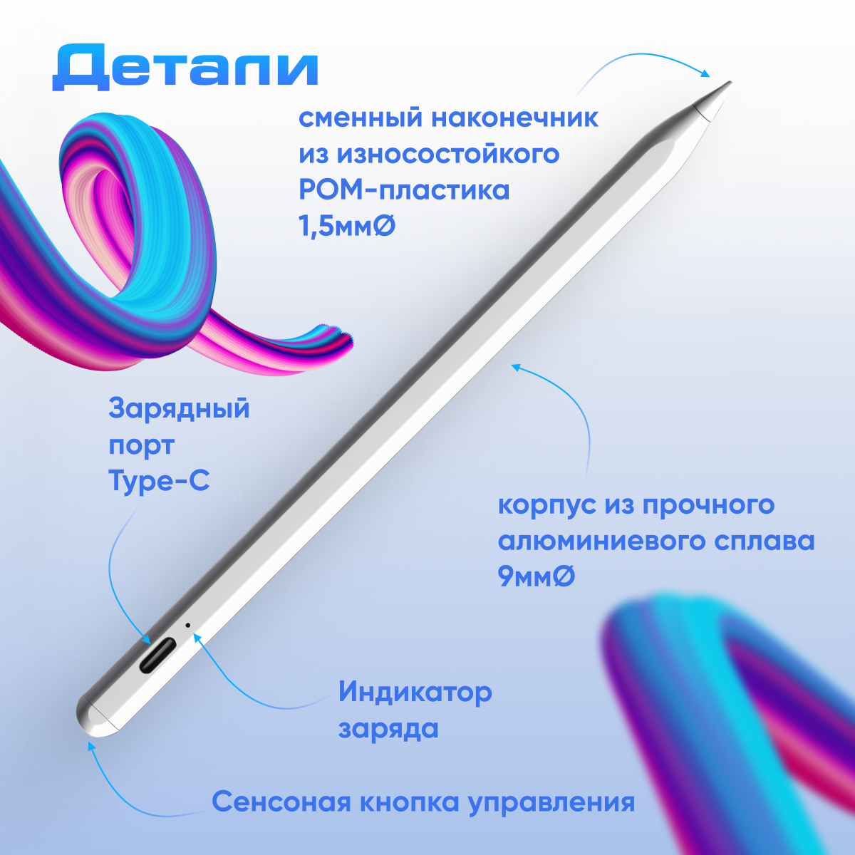 Стилус для iPad с функцией изменения толщины линии при наклоне (Подходит только для Айпад с 2018г) интересное: