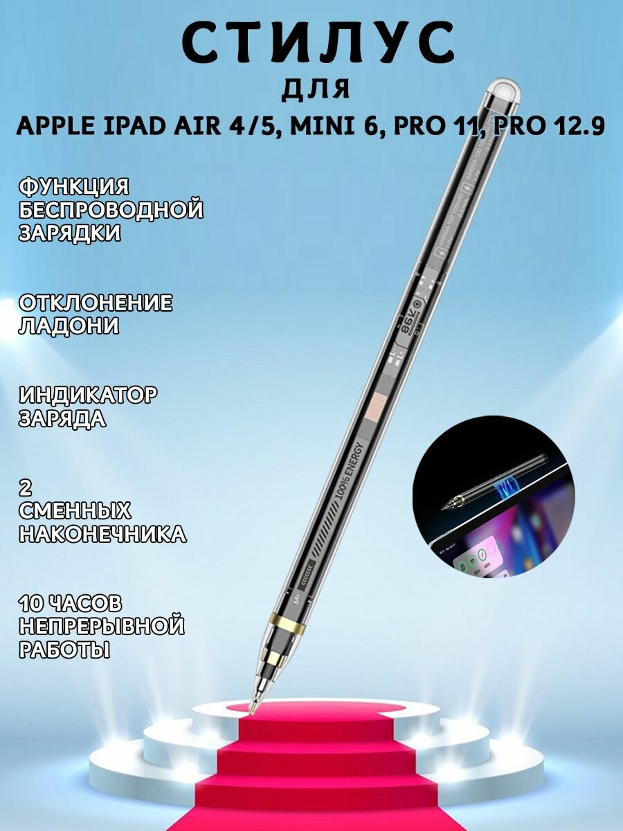 Активный стилус с беспроводной зарядкой и индикатором заряда Dux Ducis SP-04, прозрачный интересное: