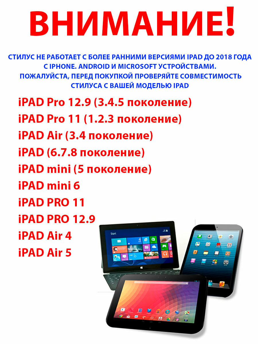 Стилус Pencil для планшета iPad c 2018-2024г. + 2 запасных наконечника и провод type-c в комплекте, белый интересное: